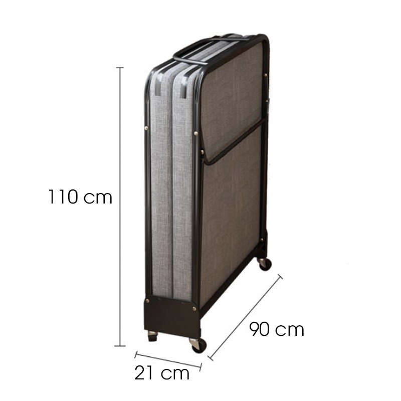 Chân giường gấp cấu tạo gồm 4 bánh xe giúp di chuyển dễ dàng.