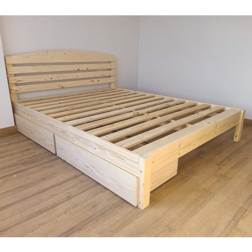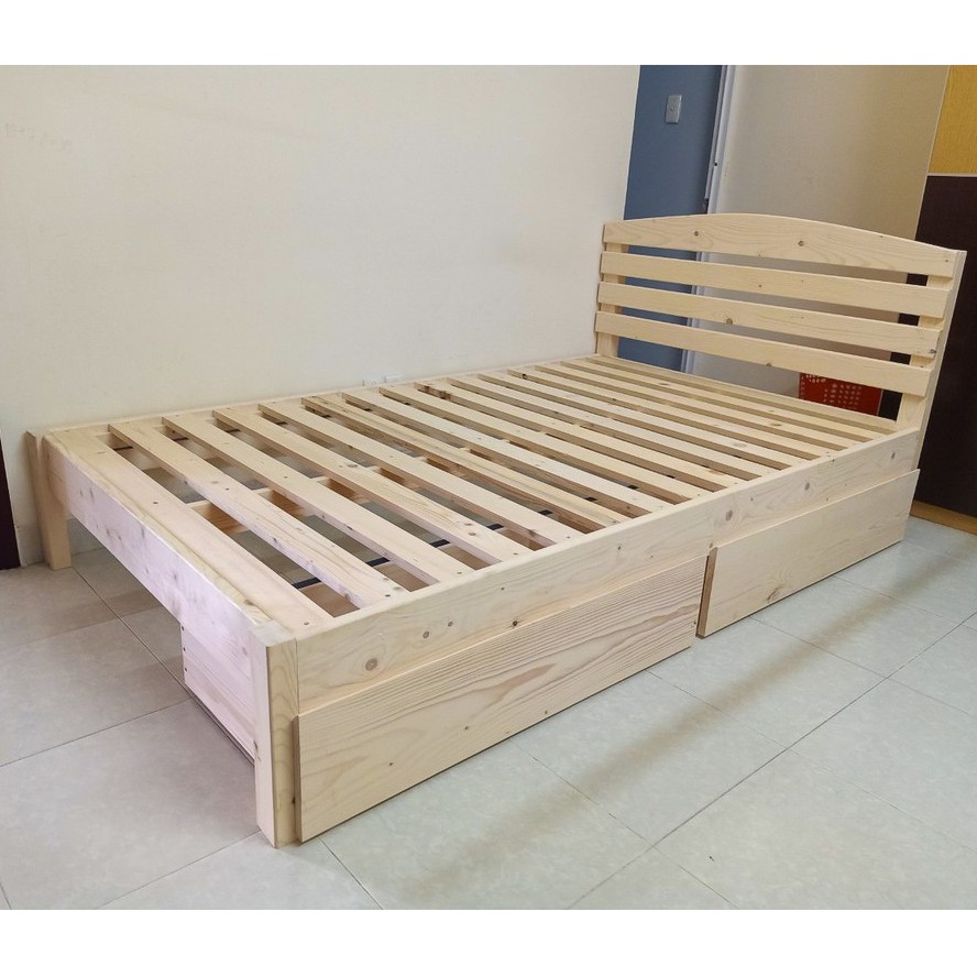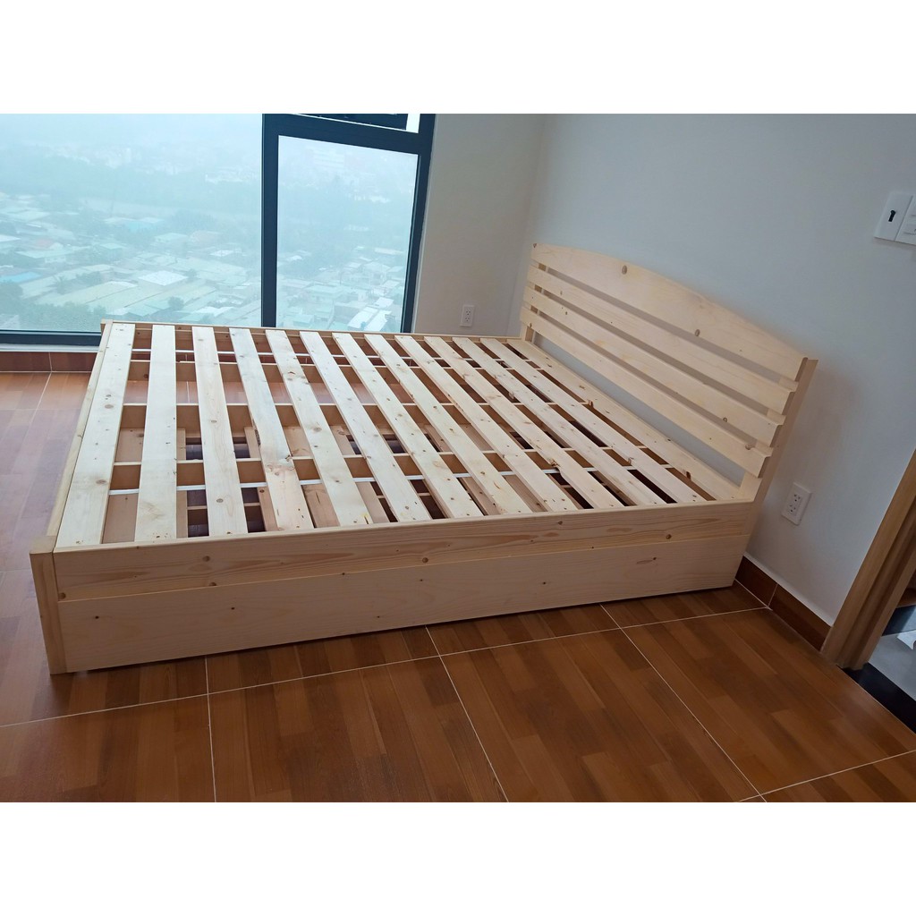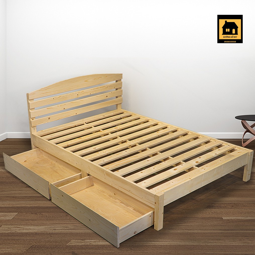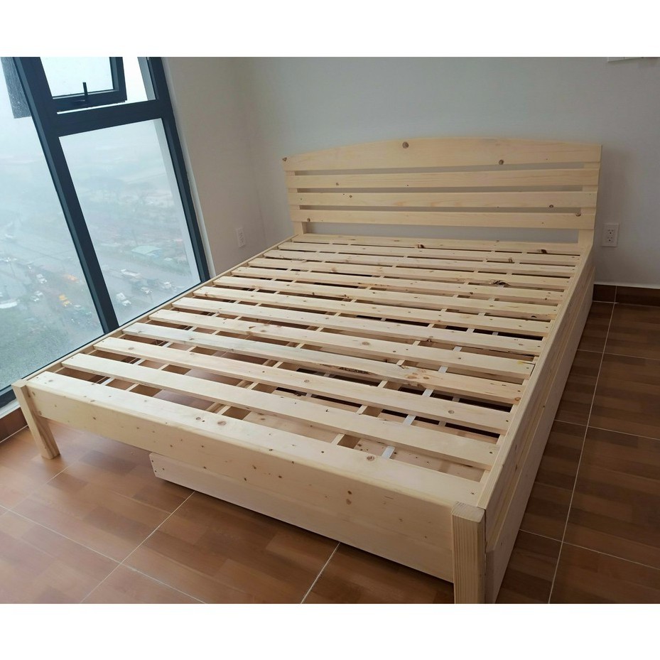 Giường ngủ gỗ Thông có đầu 2 hộc kéo 1m2_1m4_1m6_1m8