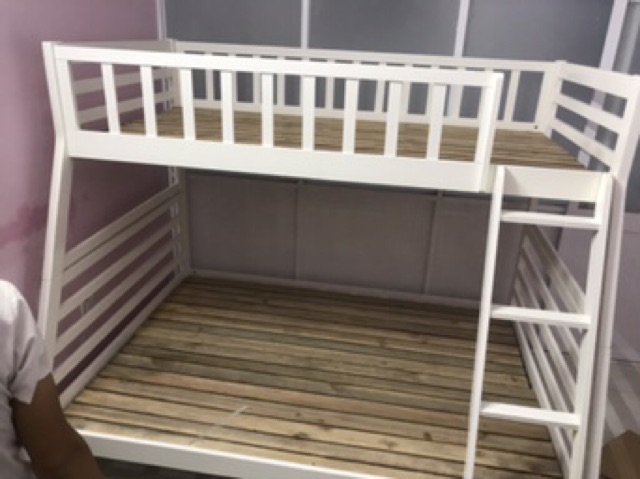 Kích thước: trên 1m x 2m, dưới 1m4 x 2mGiường tầng gỗ thông xuất khẩu bao chắc chắn