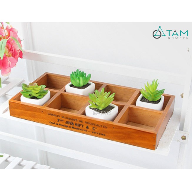 Khay gỗ chữ nhật decor nhỏ xinh để bàn chia 8 ngăn phong cách Vintage xinh xắn, thích hợp đựng đồ dùng cá nhân nhỏ như dụng cụ văn phòng, phụ liệu may vá, nữ trang mỹ phẩm... Khay gỗ được sơn màu giả cũ Retro phủ lớp PU chống thấm khi sử dụng.>>> CHI TIẾT SẢN PHẨM:
