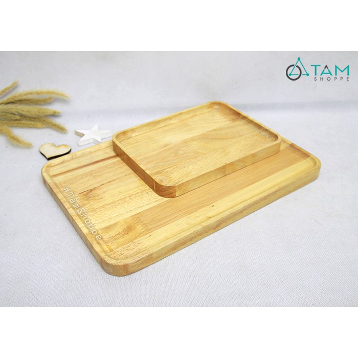 [GỖ DÀY ĐẸP] Khay gỗ chữ nhật phay lõm gỗ cao su ghép W-KGCN-01