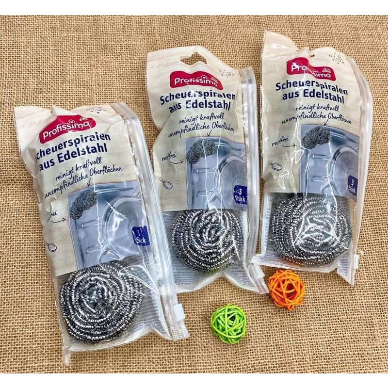 Nhà cửa & Đời sống > Dụng cụ chăm sóc nhà cửa > Miếng bọt biển, miếng chà vệ sinh || Gói 3 chiếc Bùi nhùi sắt cọ xoong nồi Profissimo ĐứcCòn hàng