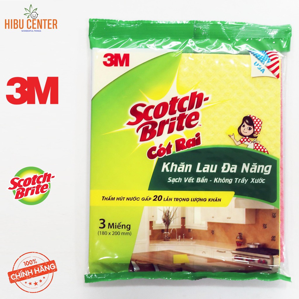 Gói 3 Miếng Khăn Lau Đa Năng Scotch-Brite 3M 18x20cm – Sạch Vết Bẩn, Không Trầy Xước – Thấm Hút Gấp 20 Lần Trọng Lượng Khăn – Hàng Chính Hãng – HIBUCENTERKhăn lau đa năng Scotch-Brite có thể lau sạch vết bẩn trên mọi bề mặt, thấm hút hiệu quả vượt trội