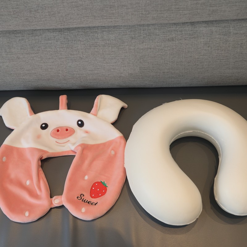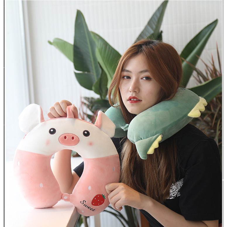 Gối Chữ U Cao Su Vải Bông Mịn Họa Tiết Thú Bông Đáng Yêu