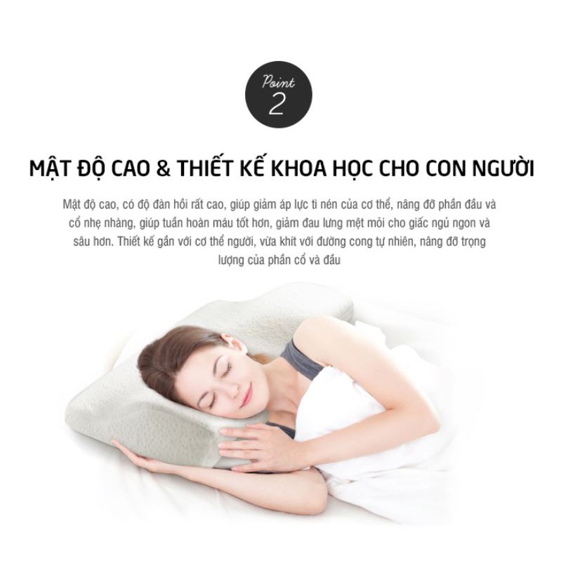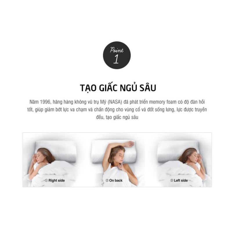 Thiết kế định hình giúp điều chỉnh sự gấp khúc của đường thở trong khi ngủ, luồng khí đi qua khí quản được lưu thông tự do, thông thoáng, chấm dứt ngay tiếng ngáy và mang lại giấc ngủ êm ái nhẹ nhàng.