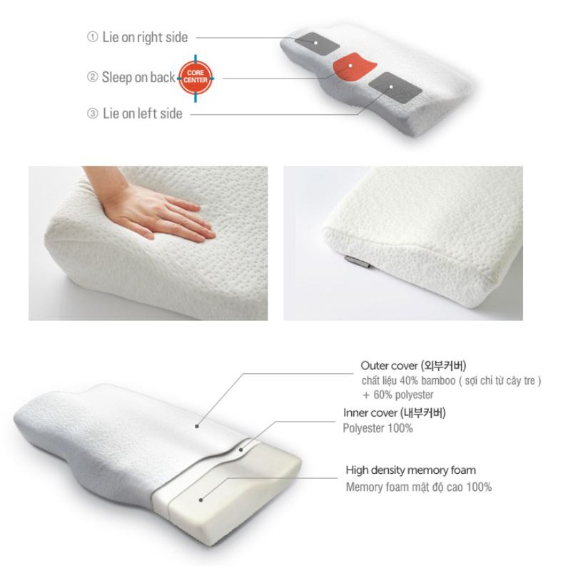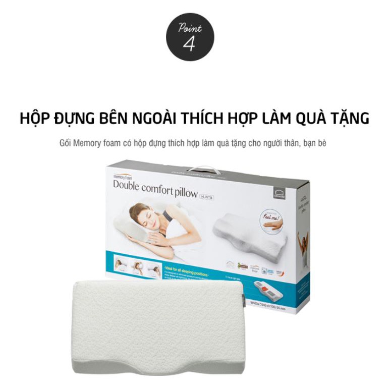 Khi bạn nằm xuống, gối sẽ từ từ cong theo những đường cong cơ thể, tạo ra sự nâng đỡ và ôm giữ tư thế hoàn hảo.
