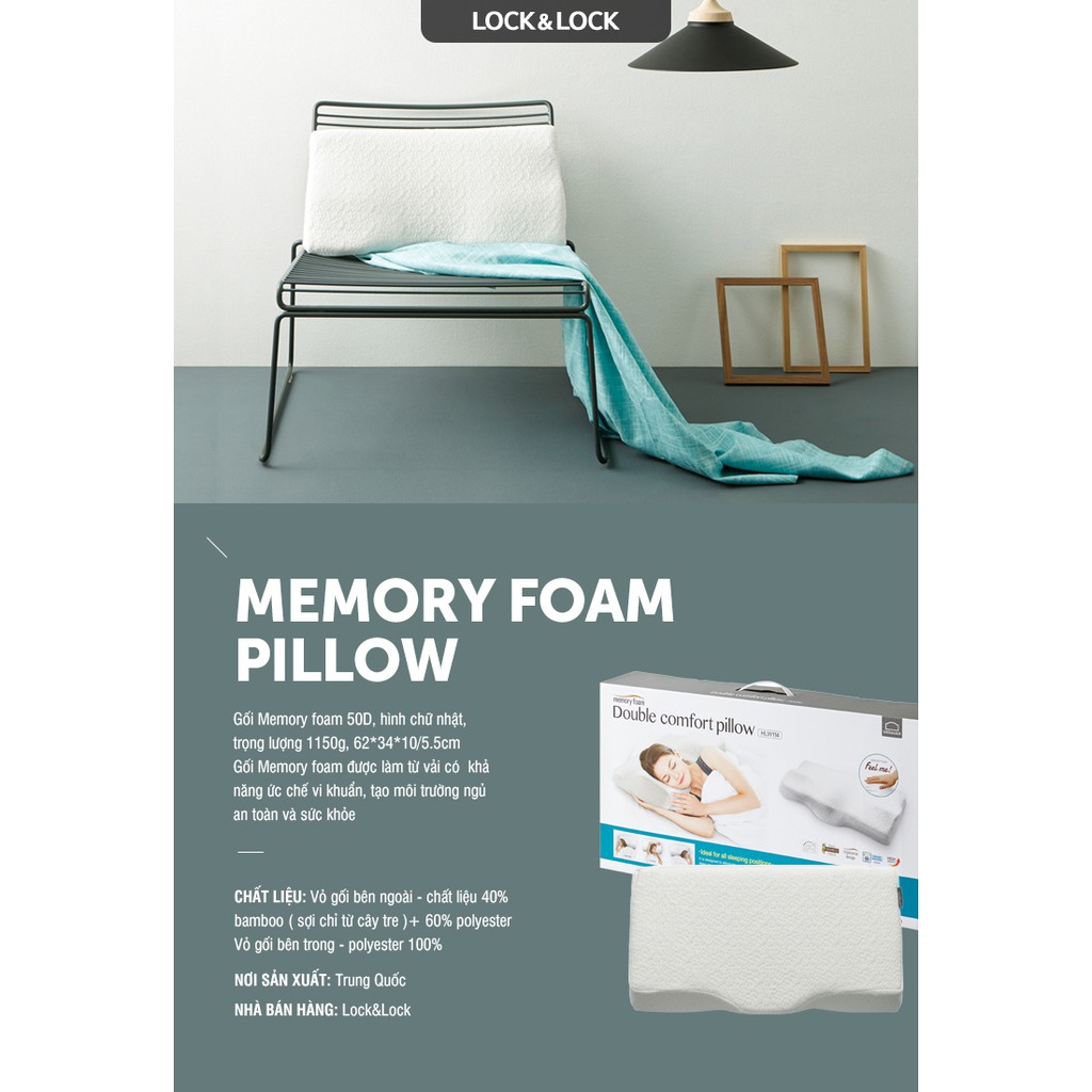 [Mã LIFEHL25 giảm 10% đơn 350K] Gối Memory Foam 50D Lock & Lock (62 x 34 x 10 cm) HLW114