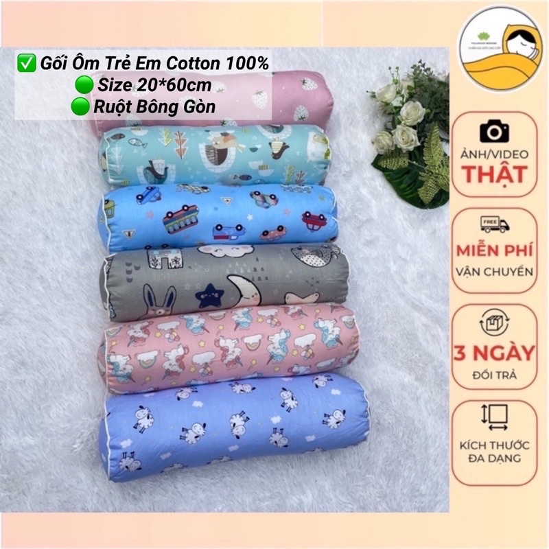 Gối Ôm Cho Bé Cotton 100% Vỏ Gối Ôm Cho Bé Size 20*60cm Ruột Gối Bông Gòn Trắng ( có khóa kéo)