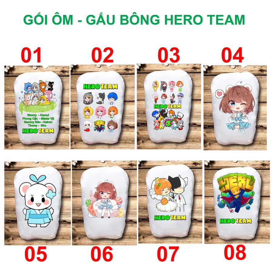 Gối ôm- Gấu Bông HERO TEAM mẫu nhóm và thành viên (BỀN- ĐẸP- GIẶT không bay màu)Kích thước: A4 : 21x30cm ( Hình in trên gối)