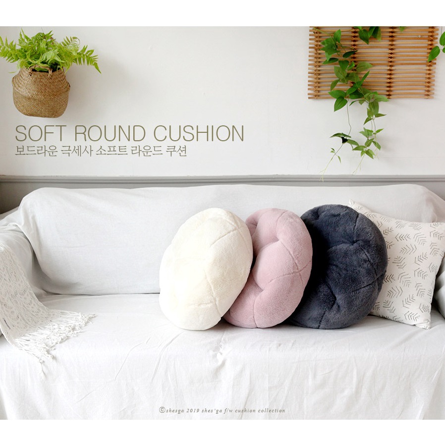 👉 Gối ôm được làm bằng sợi lông polyester mịn, tạo cảm giác êm ái, thiết kế hình tròn độc đáo, màu sắc nhã nhặn