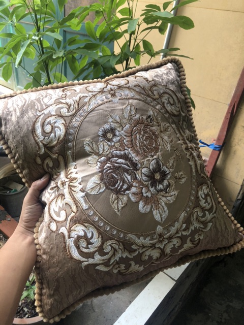 - Chất liệu vỏ ngoài bằng gấm, thêu họa tiết nổi hoa tỉ mỉ tạo cảm giác sang trọng cho căn phòng của bạn. Có thể tháo ra và giặt bằng máy giặt không sợ xù lông