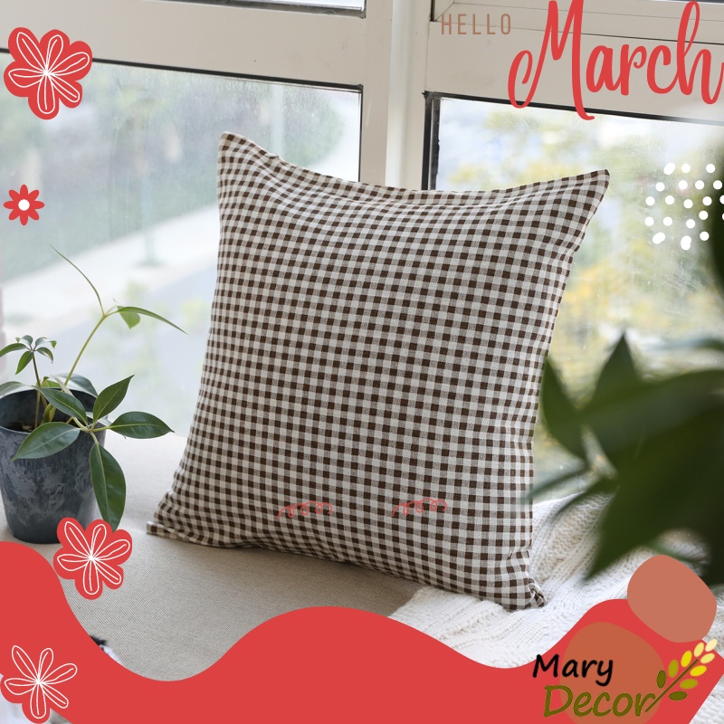 Giới thiệu Gối tựa sofa Mary Decor - họa tiết Caro nâu G-G08