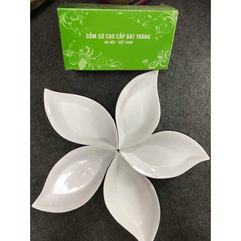 Gốm bát tràng - Set 5 đĩa đựng thức ăn hình hoa cực đẹp