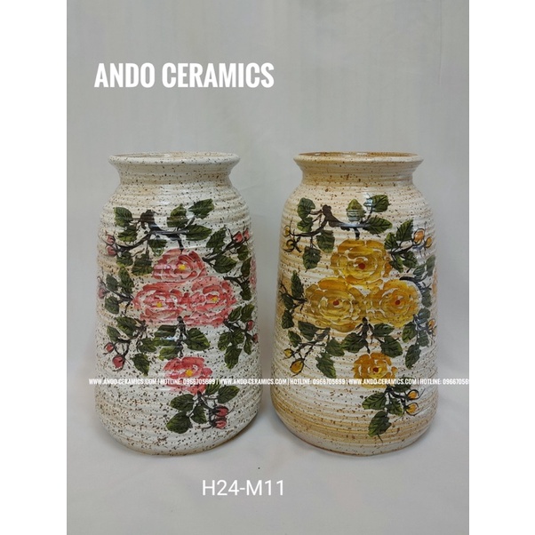 Gốm sứ Bát Tràng - bình cắm hoa vẽ hoa hồng màu men mộc