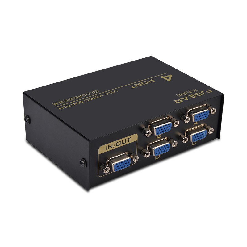 Bộ gộp VGA 4 vào 1 ra - VGA switch 4 in 1, 4 máy tính chia sẻ 1 màn hình, 4 cpu ra 1 tv, 4 laptop sang 1 máy chiếu cổng VGA.Có các nút nhận chuyển cổng VGA - Fengjie FJ-15-4