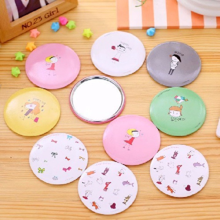 Gương nhỏ đường kính 7cm , tiện lợi khi sử dụng,dễ dàng bỏ túi mang theo khi đi ra ngoài.Trên gương có in những hình ảnh dễ thương trẻ trung ngộ nghĩnh đáng yêu mang phong cách Hàn Quốc.