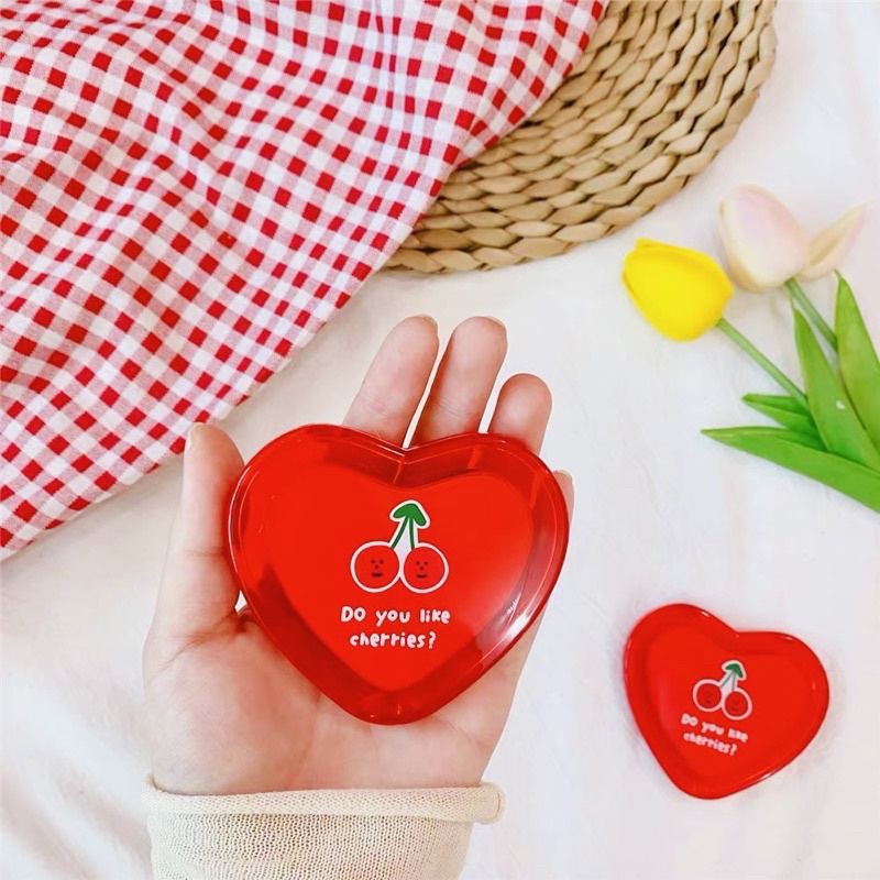Gương Gập Trái Tim 2 Mặt CHERRY Đỏ Phong Cach ULZZANG Hàn Quốc Siêu Hot Gương Trang Điểm Bỏ Túi 2 Mặt Siêu Xinh