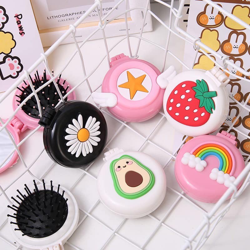 Gương lược massage cầm tay mini gấp gọn bỏ túi siêu xinh