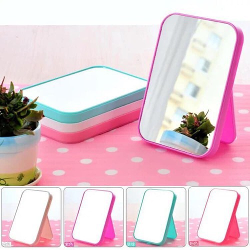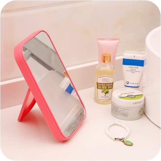 - Gương trang điểm hình chữ nhật, cạnh tròn có đế dựa phía sau để bàn.