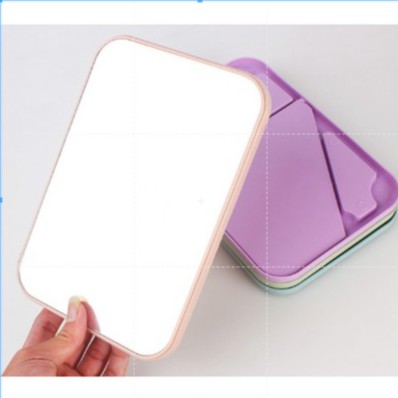 - Gương trang điểm hình chữ nhật, cạnh tròn có đế dựa phía sau để bàn.