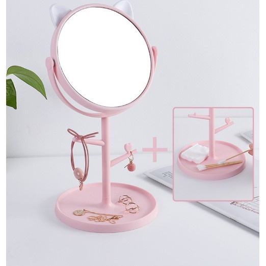 Gương Trang Điểm Để Bàn Tai Mèo đáng yêu có móc treo trang sức