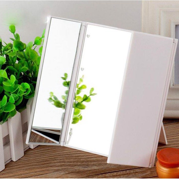Gương trang điểm đèn led 3 mặt gấp gọn, tiện lợi, dễ sử dụng