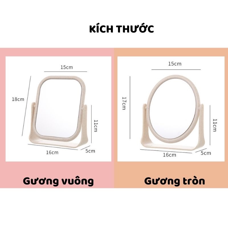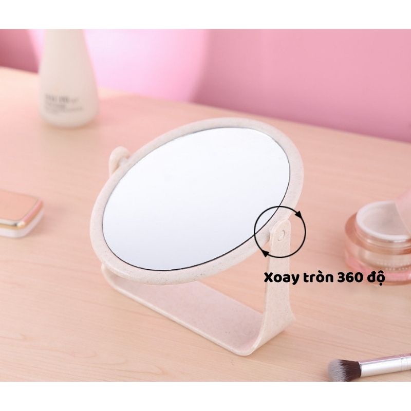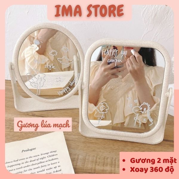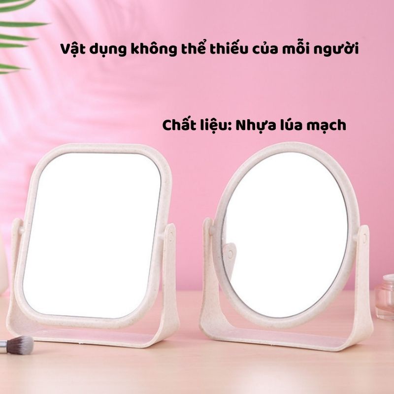 Gương trang điểm lúa mạch để bàn xoay 360 độ tiện lợi, gương 2 mặt hình tròn và vuông decor phòng phong cách hàn quốc
