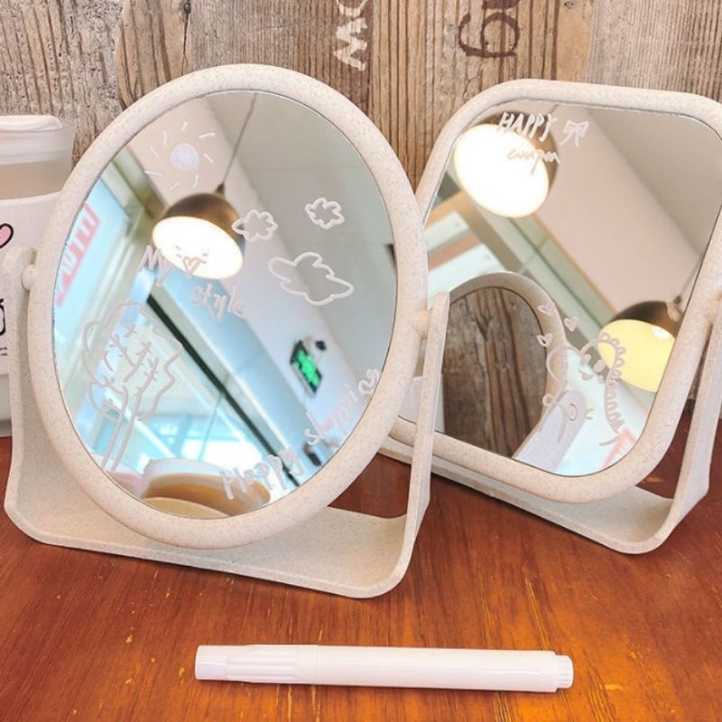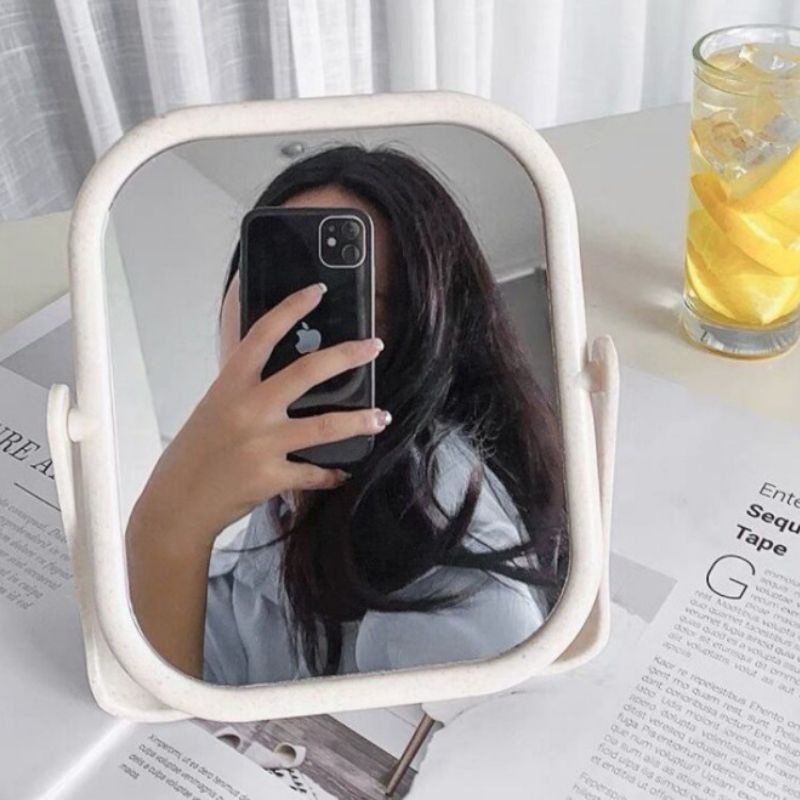 Nhà cửa & Đời sống > Trang trí nhà cửa > Gương || Gương trang điểm lúa mạch để bàn xoay 360 độ tiện lợi, gương 2 mặt hình tròn và vuông decor phòng phong cách hàn quốcCòn hàng