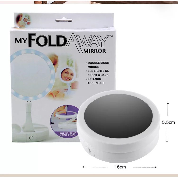 Gương trang điểm có đèn 2 mặt MyFoldAway loại dùng pin và cắm điện trực tiếpMột chiếc gương tiện lợi luôn là một món đồ không thể thiếu đối với các chị em phụ nữ. Gương trang điểm có đèn My FoldAway là chiếc gương như thế. Sản phẩm có thiết kế cao cấp, gấp gọn tiện lợi, với chiếc gương này các chị em có thể thoải mái trang điểm mất kì nơi đâu với độ tiện lợi mà nó mang lại.