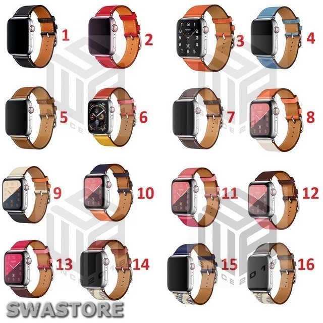 Dây da hermes apple watch có 16 mẫu. Có bảng màu kèm theo như ảnh.