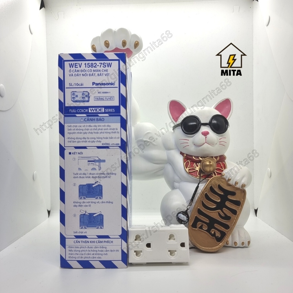 Giới thiệu Hạt ổ cắm Panasonic Wide - Ổ cắm đơn 2 chấu 1081-7SW - Ổ cắm đôi 3 chấu WEV1582-7SW - MITA