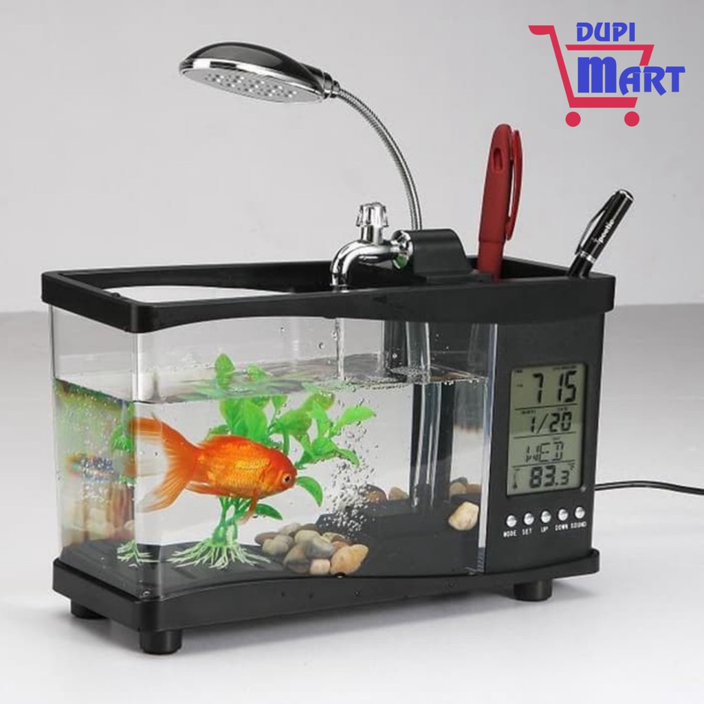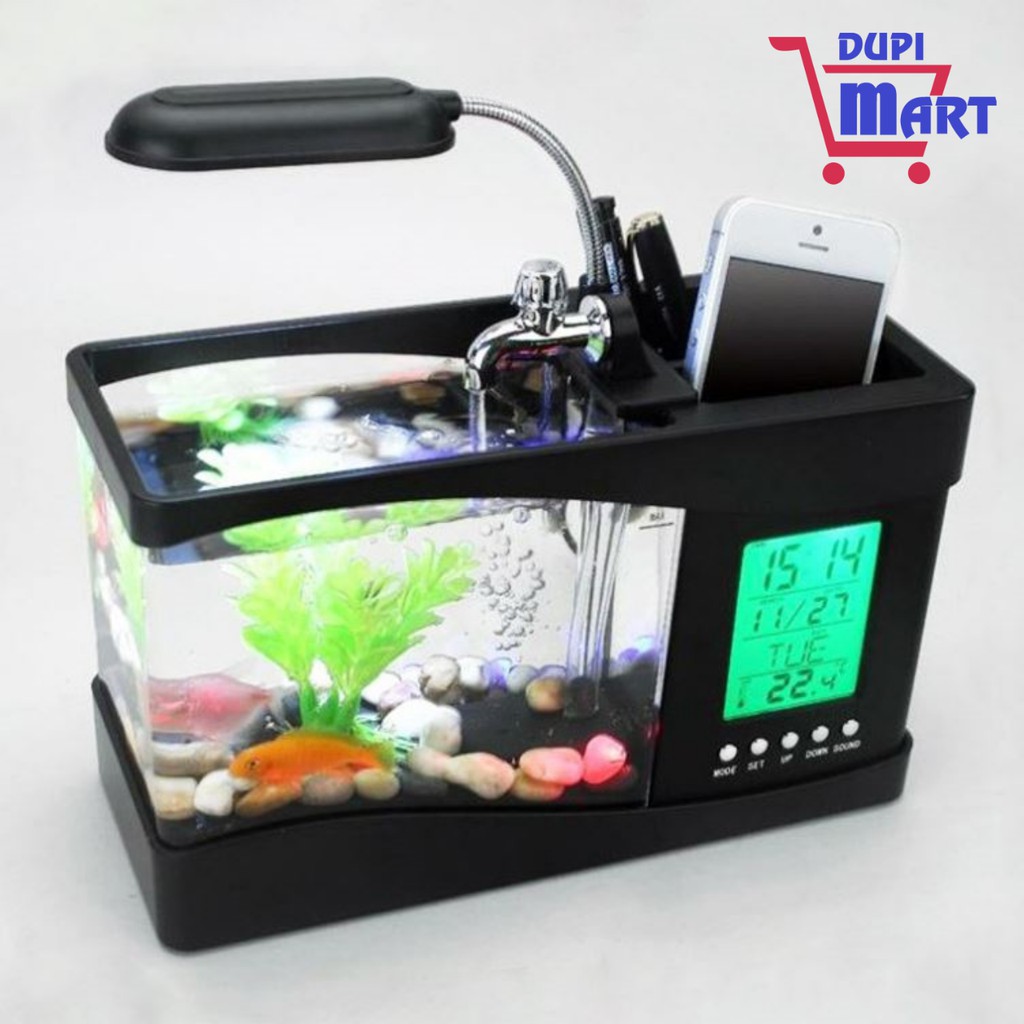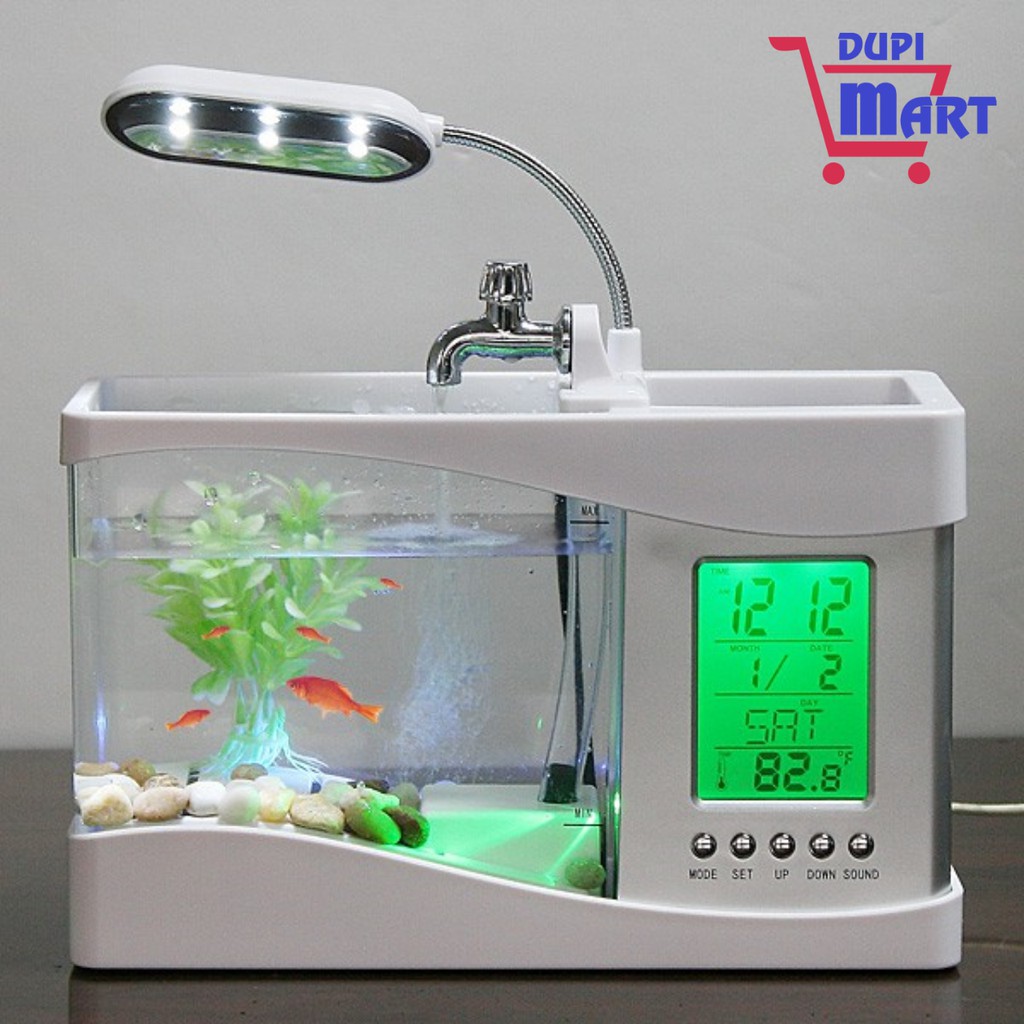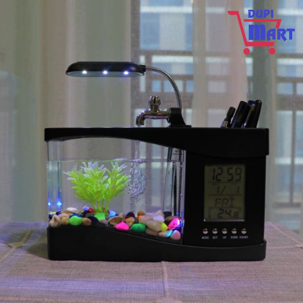 Giới thiệu [Chính Hãng] Bể Cá Mini Kiêm Đồng Hồ Led Để Bàn Siêu Đẹp, Siêu Dễ Thương (có tặng kèm đá và cây cảnh) .