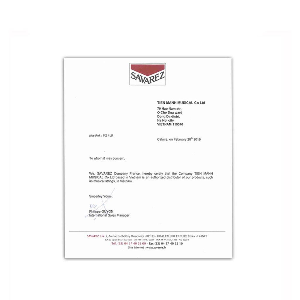 - Tiến Mạnh Music cam kết sản phẩm 100% chính hãng Savarez, sai hoàn tiền gấp 10 lần.- Tiến Mạnh Music có đầy đủ hóa đơn, chứng từ, giấy chứng nhận phân phối hợp lệ cho sản phẩm thương hiệu Savarez, và sẵn sàng cung cấp báo giá, hóa đơn, chứng từ nếu quý khách có nhu cầu phục vụ cho dự án lớn, công ty, trường học...