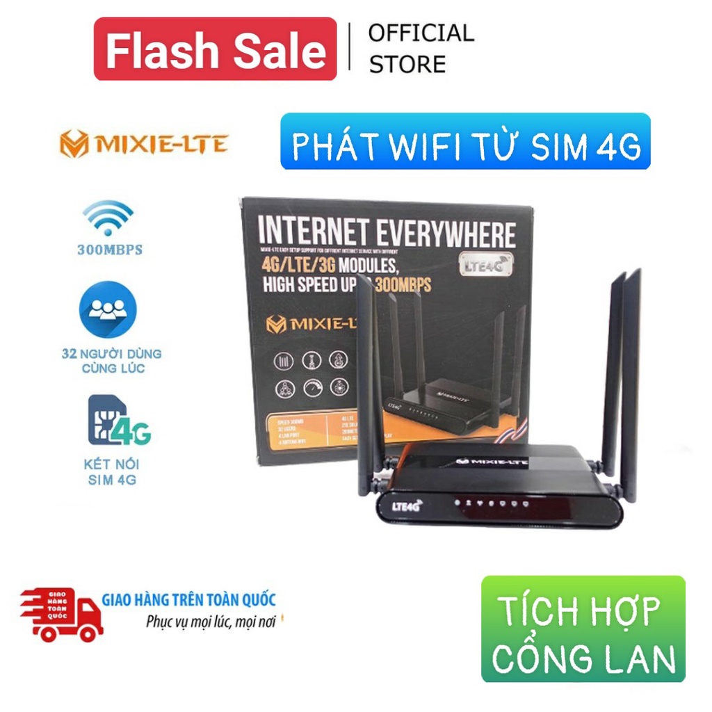 [Chính Hãng ] Bộ Phát Wifi Từ Sim 3G/4G Tốc Độ Cao MIXIE - LTE 4 RÂU