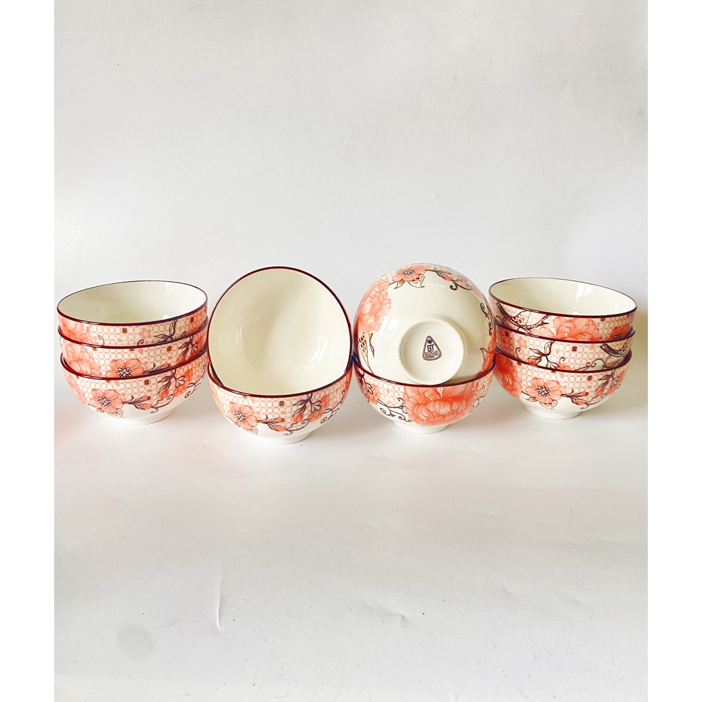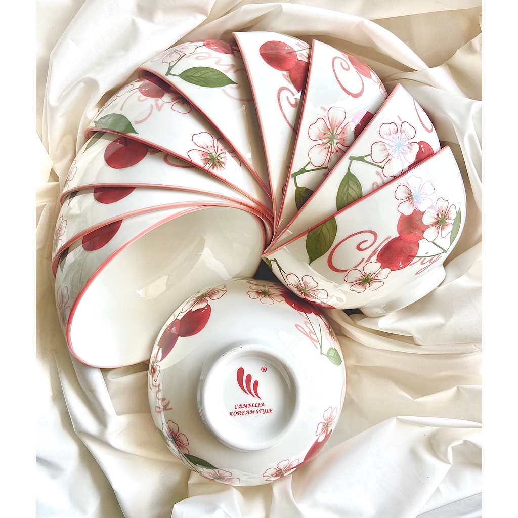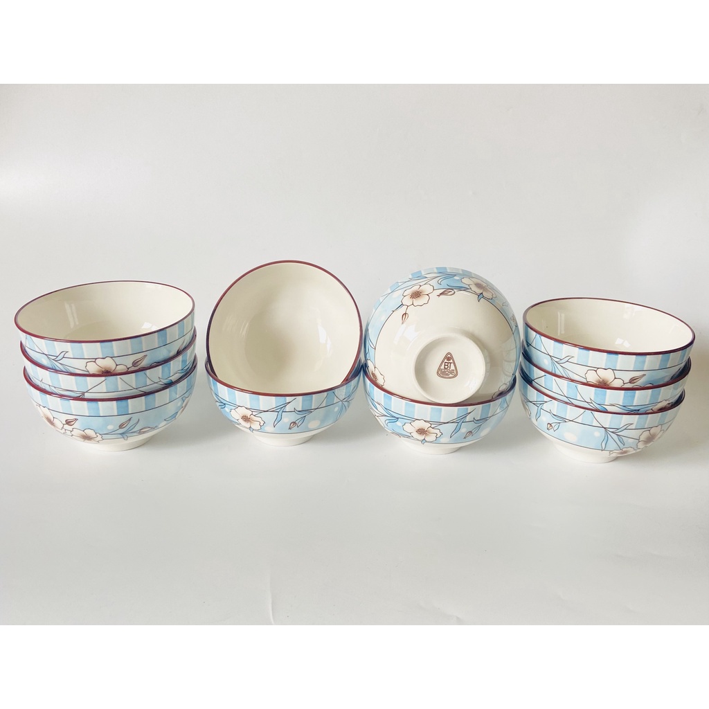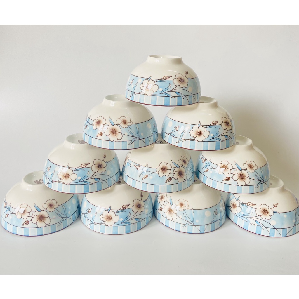 Nhà cửa & Đời sống > Bộ đồ bàn ăn > Tô || [HÀNG CAO CẤP] Bộ 10 chén ăn cơm sứ cao cấp, họa tiết hoa 3d, miệng bát kẻ chỉ màu, set 10 bát ăn cơm- gốm sứ CamelliaCòn hàng
