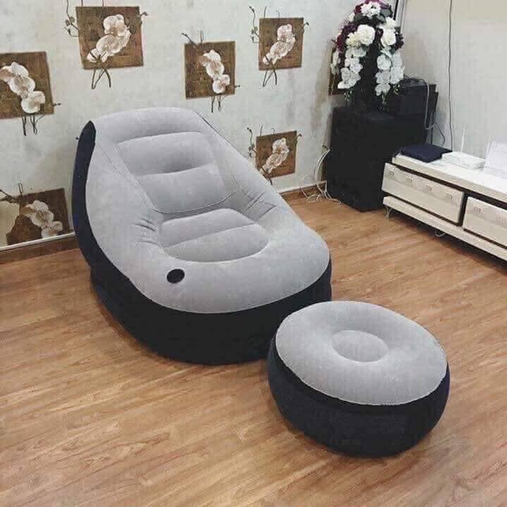 Giới thiệu [Hàng Cao Cấp] Ghế hơi tựa lưng bọc nhung tặng kèm đệm hơi lót chân
