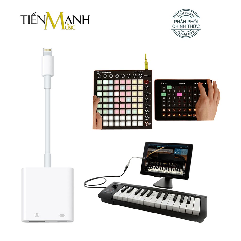 - Cáp OTG Lightning to USB 3 Camera Adapter chính hãng giúp kết nối iPhone, iPad với Đàn Piano, Organ, Keyboard, Launchpad, Launchkey, Midi Keyboard Controller... Và các Thiết bị sản xuất âm nhạc, Nhạc cụ điện tử khác có hỗ trợ MIDI Output.