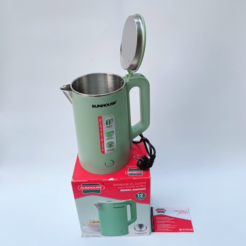[Hàng chính hãng ] Ấm siêu tốc inox 2 lớp 1.7L SUNHOUSE SHD1350 - Sôi Nhanh -Tiết kiệm điện năng