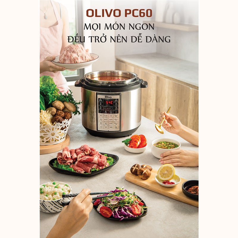 Thiết Bị Điện Gia Dụng > Đồ gia dụng nhà bếp > Nồi áp suất || [Hàng chính hãng, Bảo hành 24 tháng] Nồi Áp Suất Điện Đa Năng OLIVO PC60Còn hàng