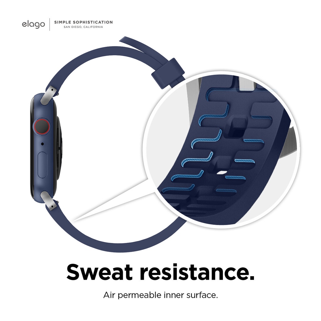 NHƯ DÂY CHUYỀN THỂ THAO, DÂY ĐEO ELAGO CÓ THỂ DÙNG ĐƯỢC NHƯNG theo một cách khác! Bề mặt bên trong AIR PERMEABLE cho phép CHỐNG LÃO HÓA tuyệt vời, làm cho dây đeo này trở nên dễ chịu khi tập luyện.