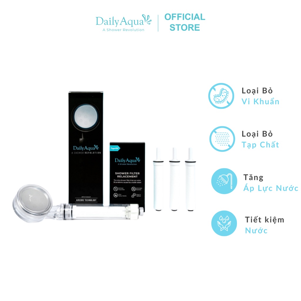 Nhà cửa & Đời sống > Đồ dùng phòng tắm > Vòi sen & vòi xịt vệ sinh || [Hàng chính hãng- Freeship] Bộ vòi sen lọc nước Daily Aqua, loại bỏ bụi bẩn vi khuẩn - 1 vòi sen + 4 lõi lọcCòn hàng