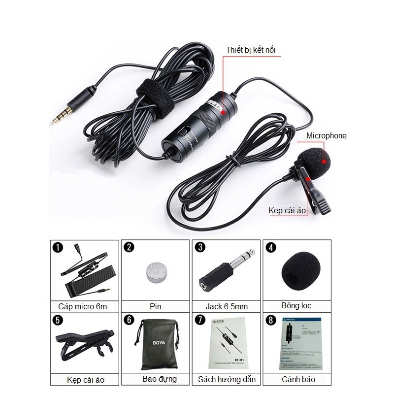 Thiết Bị Âm Thanh > Micro thu âm || [Hàng Chính Hãng] Micro Thu Âm Cài Áo Cho Điện Thoại Thông Minh, Máy Ảnh, Máy Quay Boya By-M1Còn hàng