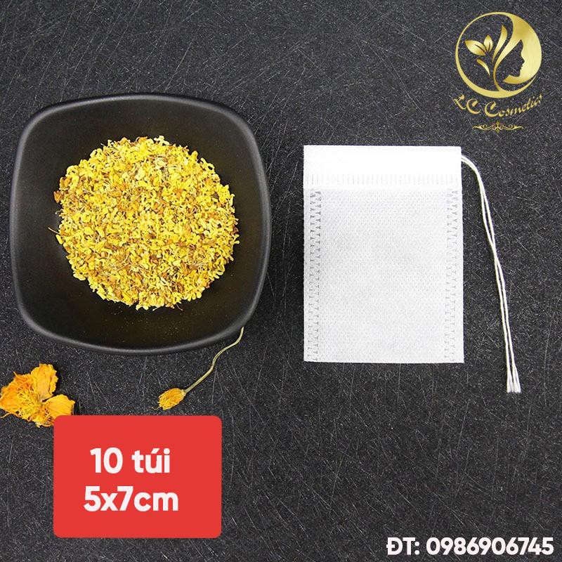 {Hàng chính hãng} Set 10 túi lọc trà thảo mộc 5 x 7 có dây rút bằng vải không dệt siêu tiện lợi