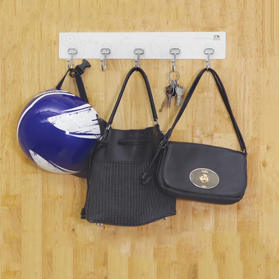 Thanh 5 móc treo bằng thép mạ crom, chịu tải tới 12kg. Móc to nên khá chắc chắn, treo được nhiều vật dụng cùng lúc.