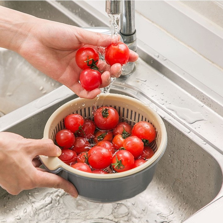 Nhà cửa & Đời sống > Dụng cụ nhà bếp > Dụng cụ lọc || [HÀNG CÓ SẴN] Rổ nhựa PP tròn thoát nước rửa trái cây, rau củ sáng tạo 2 lớp chắc chắnCòn hàng