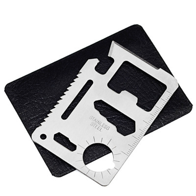 Thẻ công cụ gồm 11 chức năng: Dao, mở hộp, mở vít, mỏ bu lông bé, mở bu lông lớn, lưỡi cưa, mở nắp chai, thước, thước góc, mở ốc cánh chuồn và lỗ treo