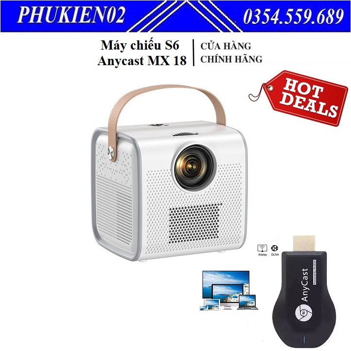 [ Chính hãng ] Combo Máy chiếu siêu nhỏ gọn, siêu tiện lợi cầm tay Mini S6 + HDMI Không Dây Anycast MX 18 cao cấp