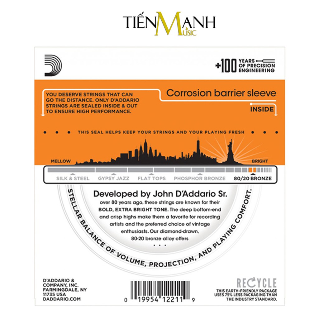 [Chính Hãng] D'Addario EJ10, EJ11, EJ12, EJ13 - Bộ Dây Đàn Ghi-ta 80/20 Bronze Acoustic Guitar DAddario