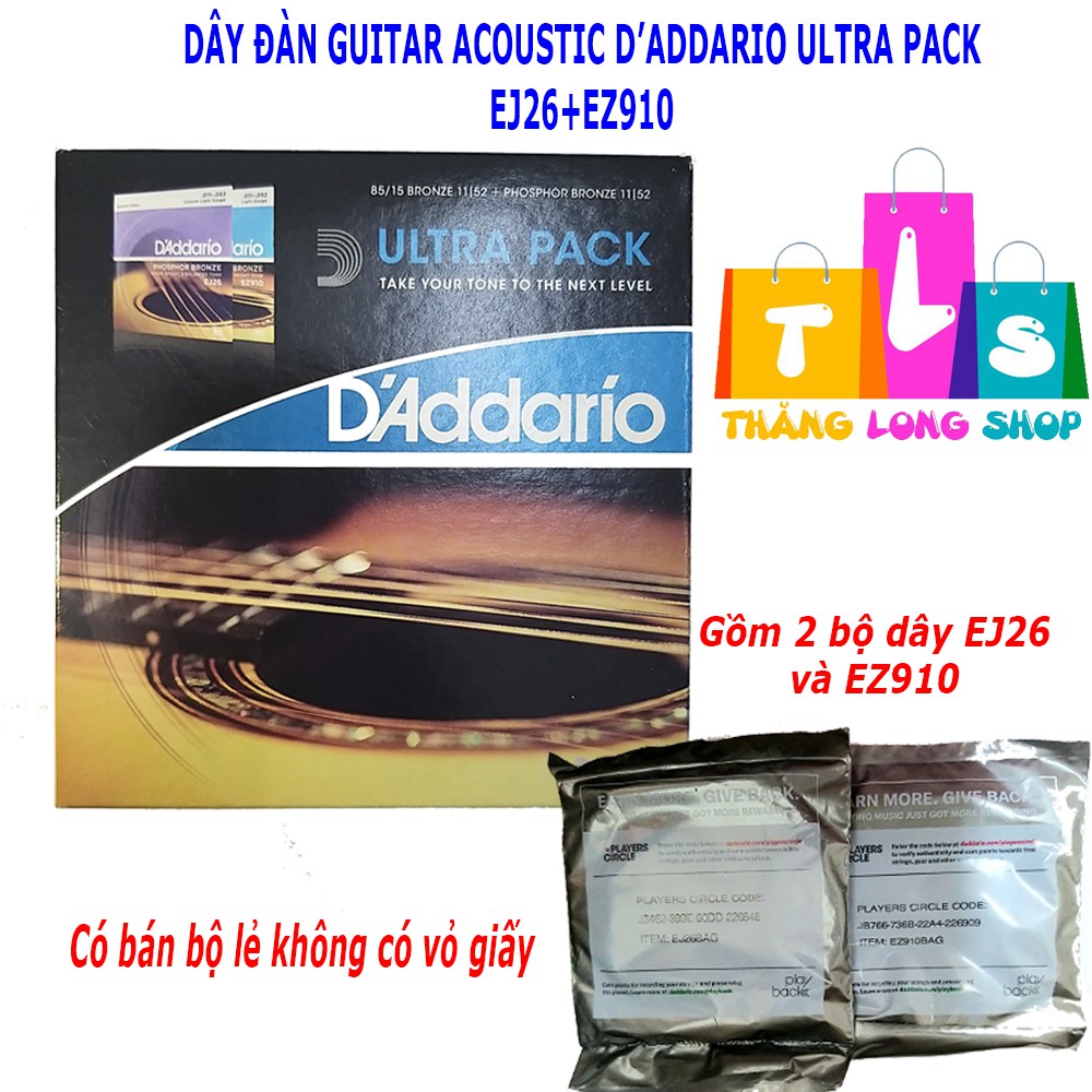 Sở thích & Sưu tầm > Nhạc Cụ & Phụ Kiện > Phụ Kiện Âm Nhạc || [Chính hãng] D'Addario Ultra Pack EJ26 + EZ910 - Combo dây đàn guitar acoustic D'addario EJ26 + EZ910Còn hàng