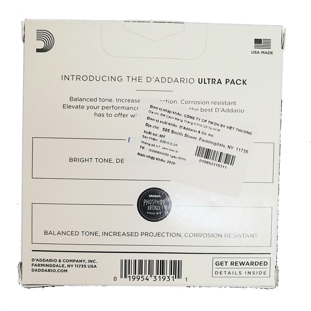 [Chính hãng] D'Addario Ultra Pack EJ26 + EZ910 - Combo dây đàn guitar acoustic D'addario EJ26 + EZ910
